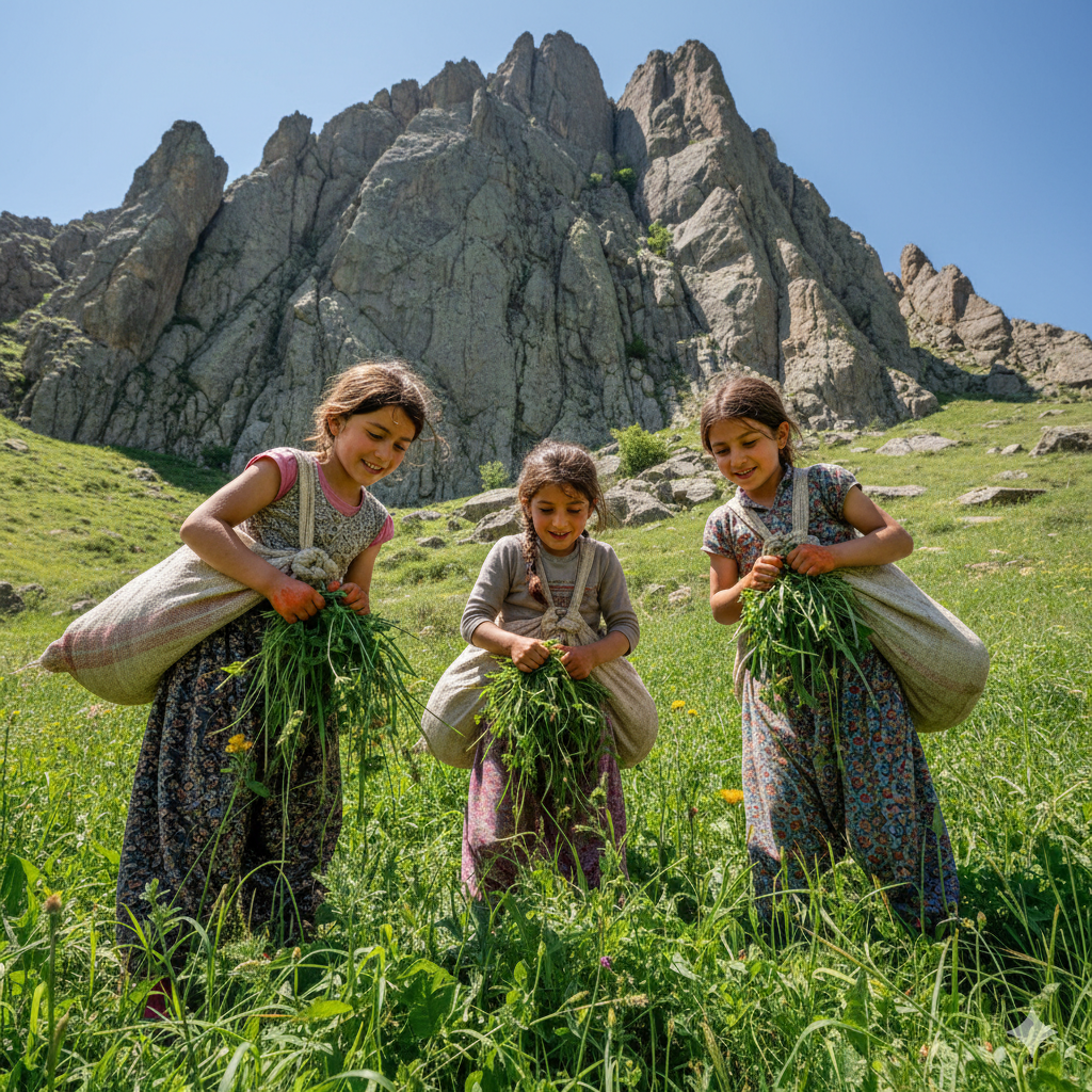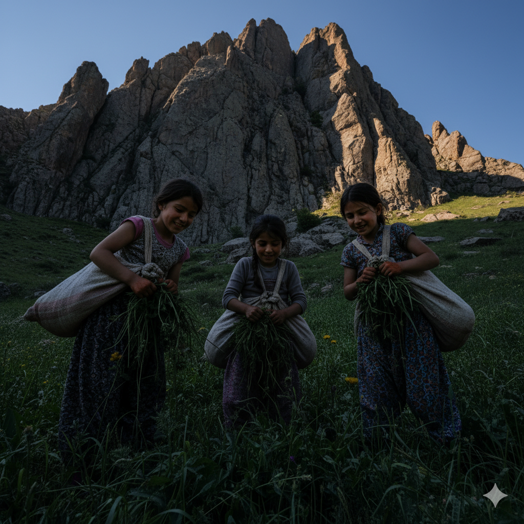 “Şunu da alalım,” “Bak burada daha tazesi var!” derken, heybelerini doldurmanın heyecanıyla zamanın nasıl akıp gittiğini fark etmediler. Gökyüzündeki güneş yavaş yavaş tepelerinden kaymış, gölgeler uzamaya başlamıştı. Yaylada onları bekleyen görevleri, eve dönüş saatini, nenenin tembihlerini Kılıçkaya’nın dev gölgeleri arasında unutmuşlardı.