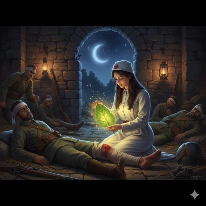 Bir diğer askerin bacağında şarapnel yarası vardı. Sarıkız yine bağa yaprağını kullandı. Yaprağın toprağın kadim bilgeliğini, Anadolu’nun şifalı nefesini taşıdığını hissediyordu. Her bir yaraya dokunduğunda, sanki sadece bedeni değil, ruhları da iyileştiriyordu. Askerler ona minnetle bakıyor, bazılarının gözlerinde umudun yeniden parladığını görüyordu.