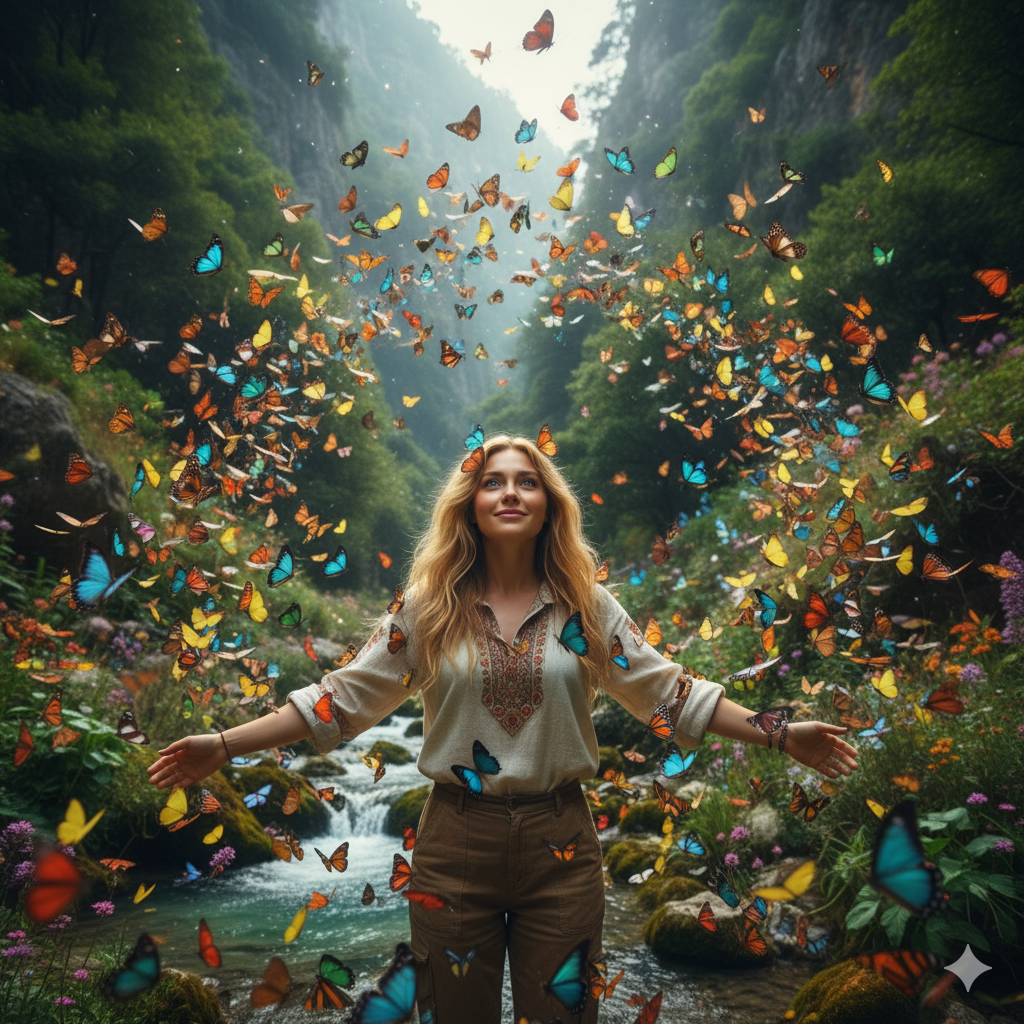 Zaman, nehirler gibi akıp gitmiş, o küçük kız büyüyüp dünyayı adımlayan bir gezgin olmuştu. Yine bir gün, yolu Fethiye’nin cennet köşesi Ölüdeniz’deki Kelebekler Vadisi’ne düştü. Bir grupla vadiyi keşfederken, çocukluğunun masalsı anılarını canlandıran büyülü bir an yaşandı. Sanki gizli bir el bir düğmeye basmış gibi, binlerce, on binlerce kelebek aynı anda havalandı.